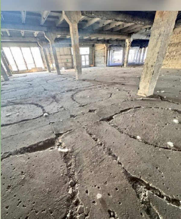 Она рассказала, что при демонтаже под слоями напольной плитки был обнаружен узорный пол — четырёхлистный орнамент из терраццо. Специалист предположила, что в девяностые годы перед тем, как всё закатать в керамогранит, латунную ленту, которая разделяла листочки и фон, выдрали для сдачи в пункт приёма цветного металла.