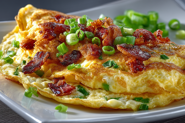 Сочетание хрустящего поджаренного бекона и нежного сливочного омлета — это кулинарная классика, которая никогда не приедается.