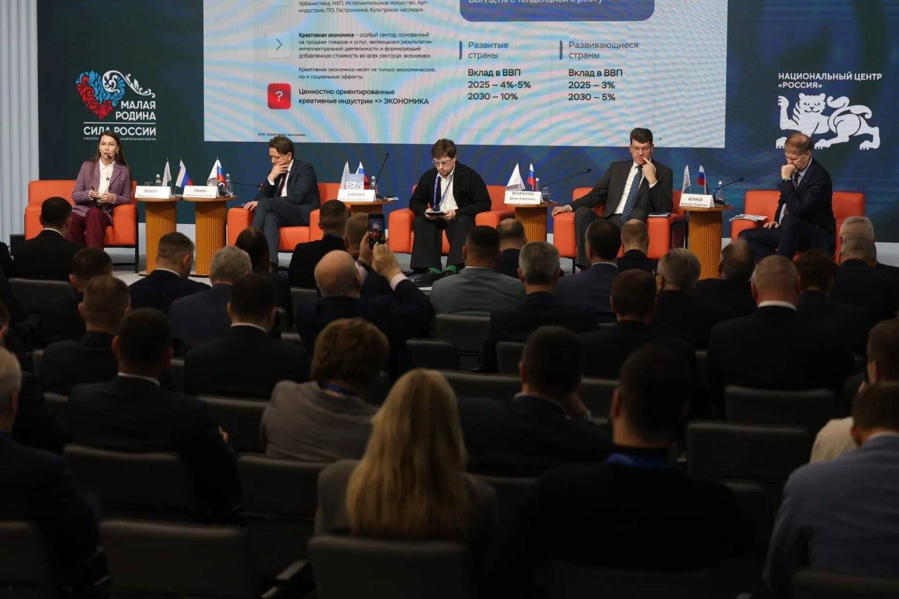 В рамках III Всероссийского муниципального форума «МАЛАЯ РОДИНА — СИЛА РОССИИ» в Национальном центре «Россия» состоялась партнёрская сессия «Глава муниципалитета — партнёр государства в развитии креативной экономики и достижении национальных целей». Участники обсудили значение малых городов, геодемографические тенденции и вклад творческих индустрий в развитие территорий.