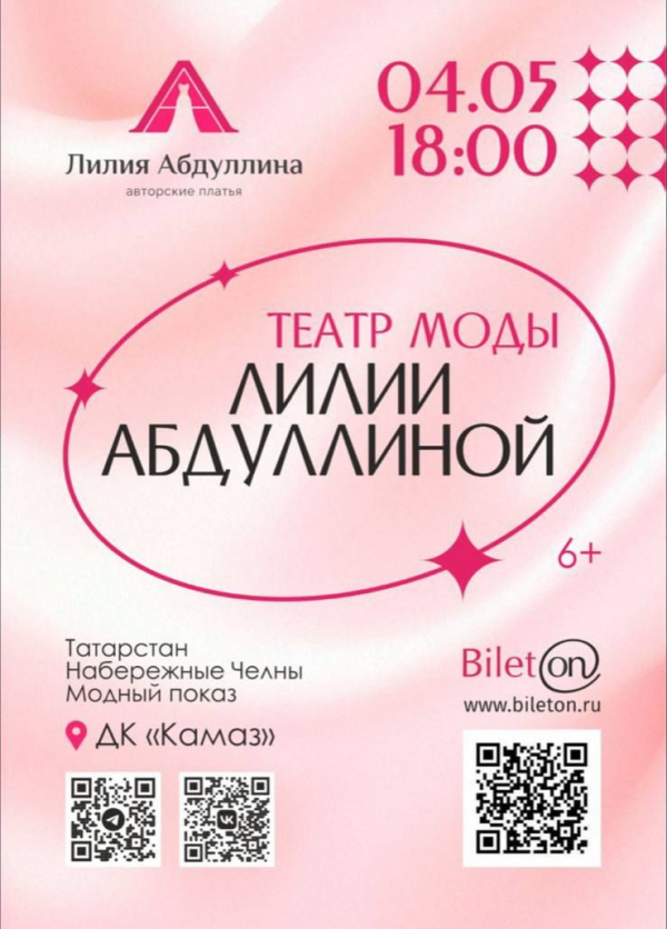 В ДК «КАМАЗ» Набережных Челнах состоится модный показ от дизайнера авторских платьев Лилии Абдуллиной. На весеннее шоу, которое пройдёт 4 мая в 18:00, можно попасть, приобретя билеты в интернет-магазине Билетон.