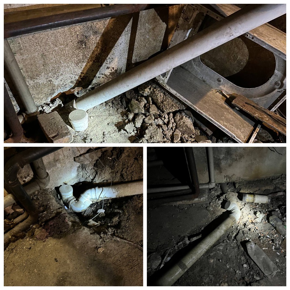 Чтобы показать, как сейчас выглядят канализационные трубы каждого подъезда, Виктор Степаненко провел корреспондента в подвал дома. Вот так выглядят трубы первого, второго и четвертого подъездов.
