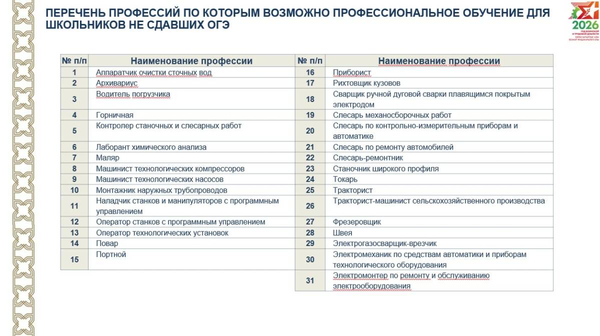 Пройти профессиональное обучение такие школьники могут по следующим специальностям: