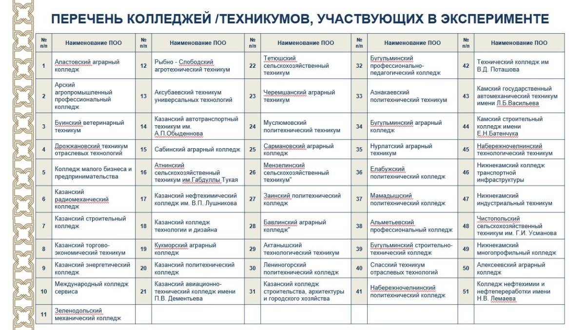 В Татарстане для участия в эксперименте выбрали 51 учреждение среднего профессионального образования