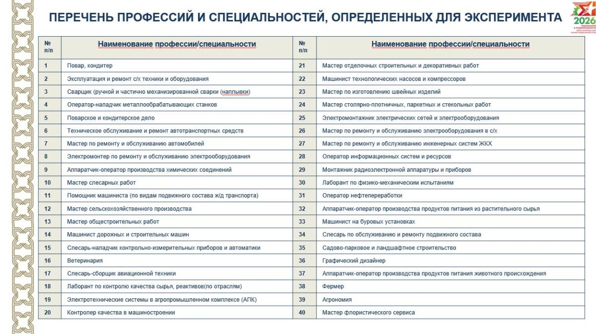 В отобранных колледжах и техникумах предусмотрены 40 профессий, которые смогут освоить выпускники с аттестатом за девятый класс по результатам двух экзаменов.