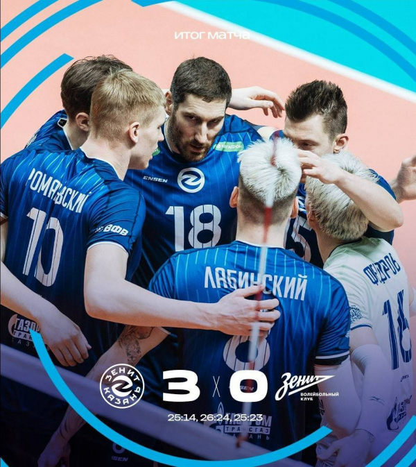 Казанские волейболисты дома одержали победу в дерби двух «Зенитов». Матч против соперника из Санкт-Петербурга завершился со счетом 3:0 в пользу хозяев.