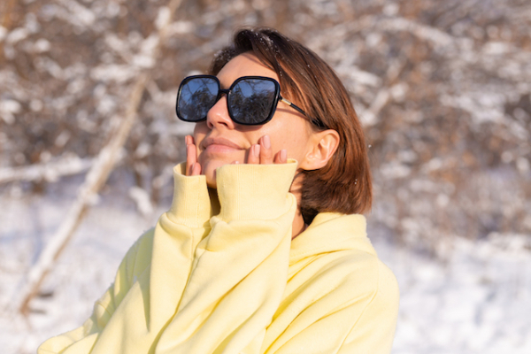 Зимой солнечный свет ярче отражается от снега, поэтому глаза нуждаются в ещё большей защите. Солнцезащитные очки необходимы в солнечную погоду независимо от времени года.