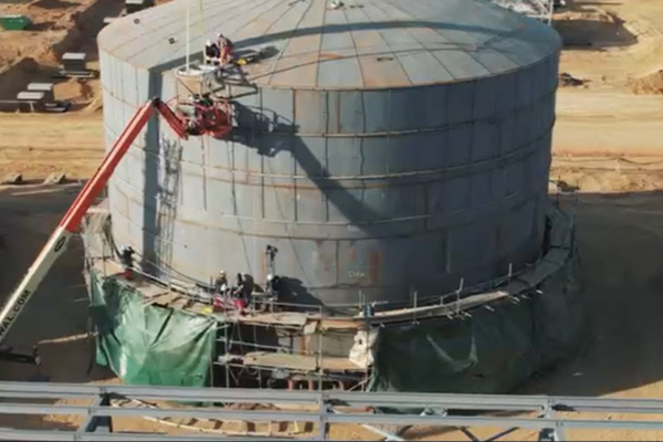 - Выполняются работы по бетонированию фундаментов, монтажу и покраске металлоконструкций и обслуживающих площадок, установке и обвязке технологического оборудования, а также сборка резервуаров типов РВС-5000 и сферических резервуаров объёмом 600 м³;